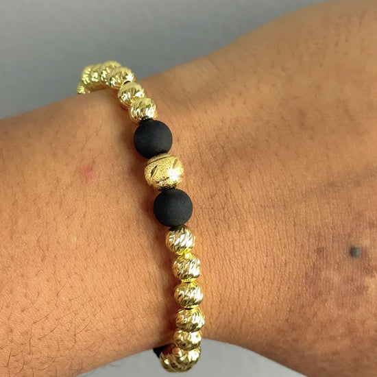Una pulsera que mezcla textura, brillo y diseño clásico. Perfecta para quienes buscan elegancia sutil con un toque de distinción.