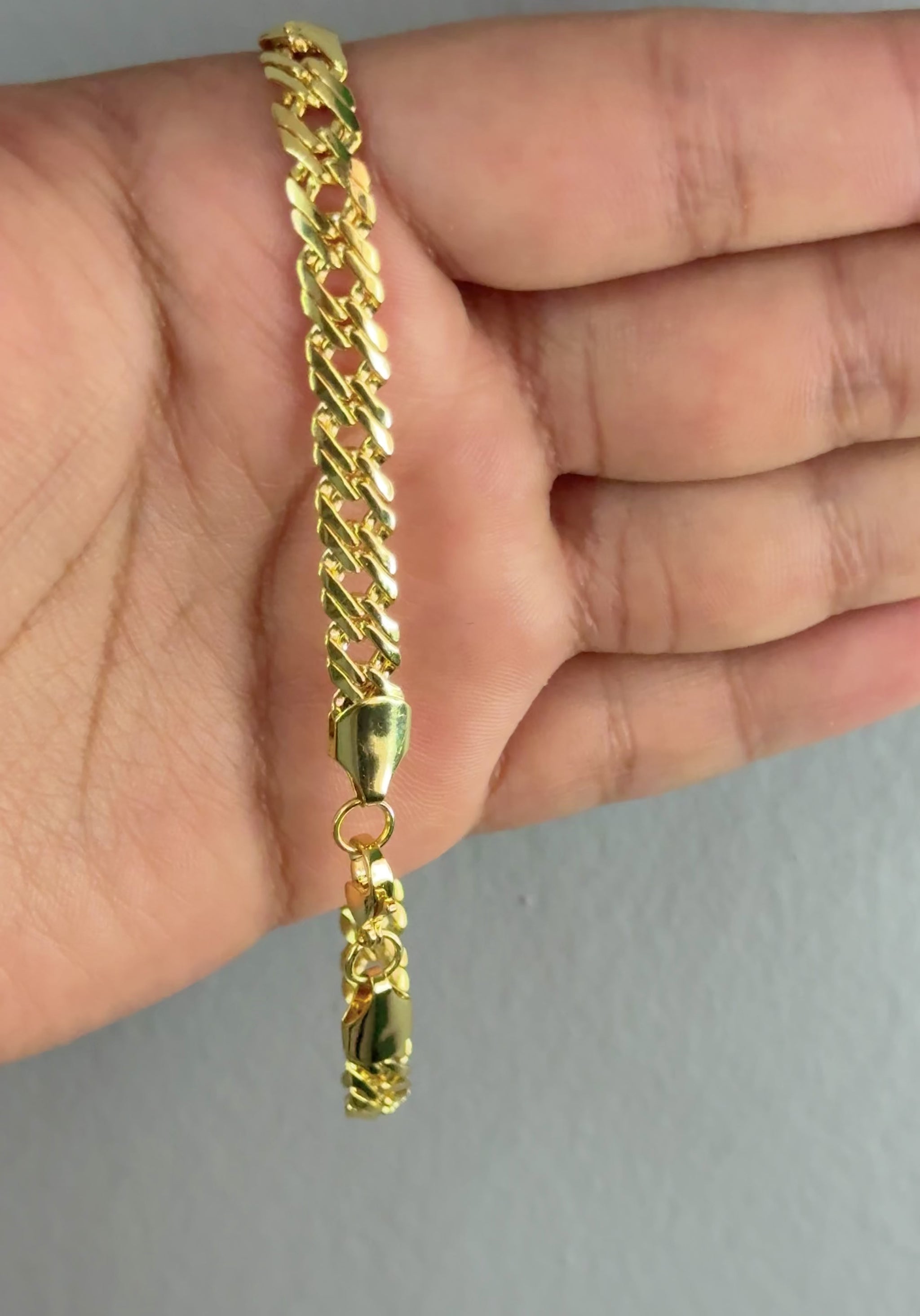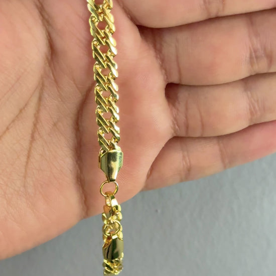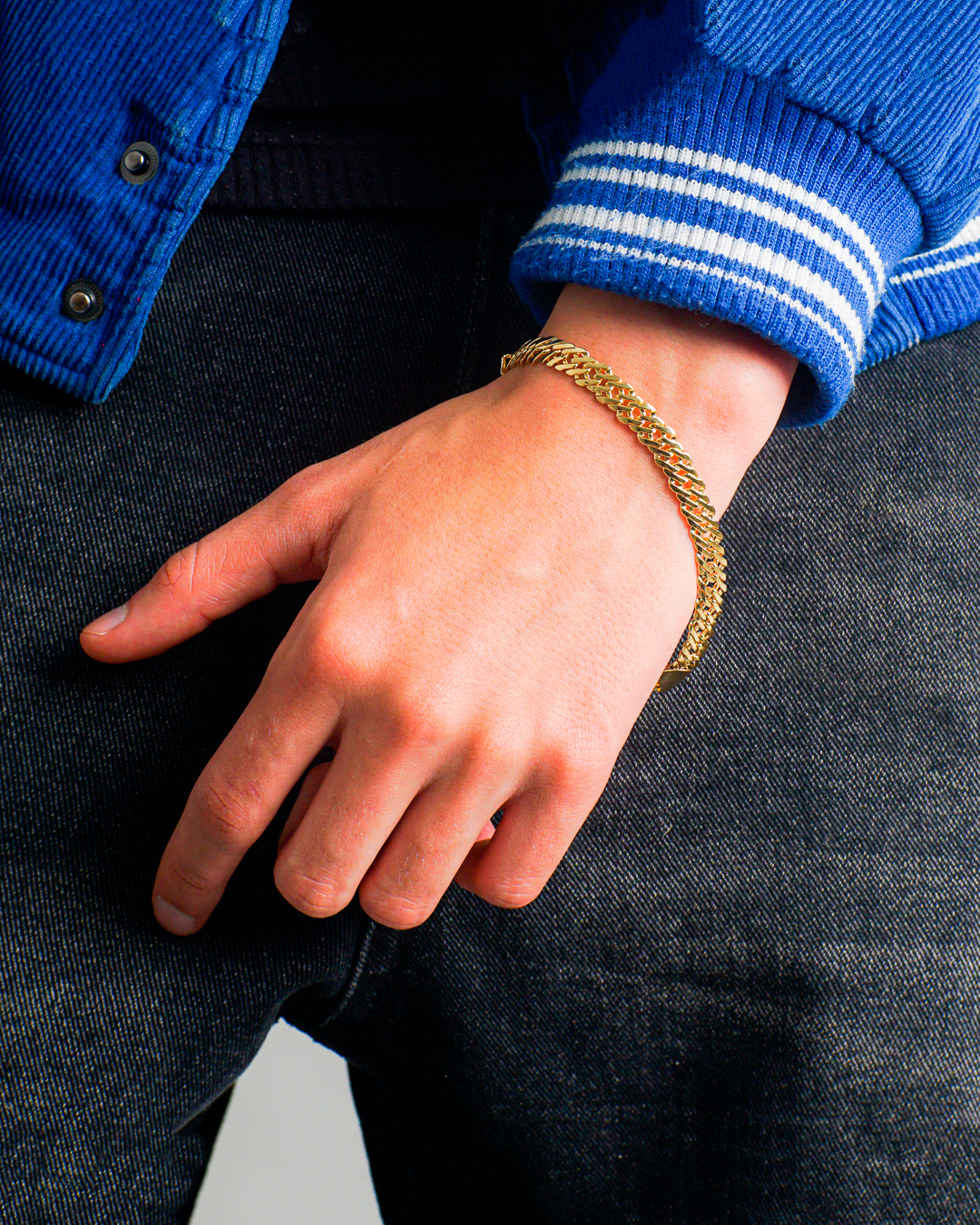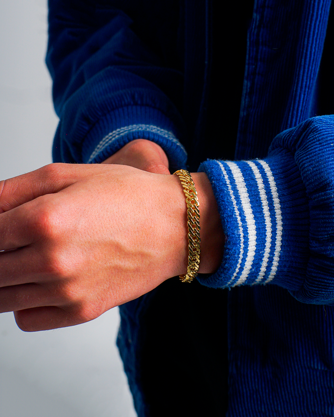 Elaborada en oro laminado 18K, garantiza un brillo duradero y una apariencia de alta gama. Con 20 cm de largo, se ajusta perfectamente a la muñeca, ofreciendo comodidad sin sacrificar presencia.